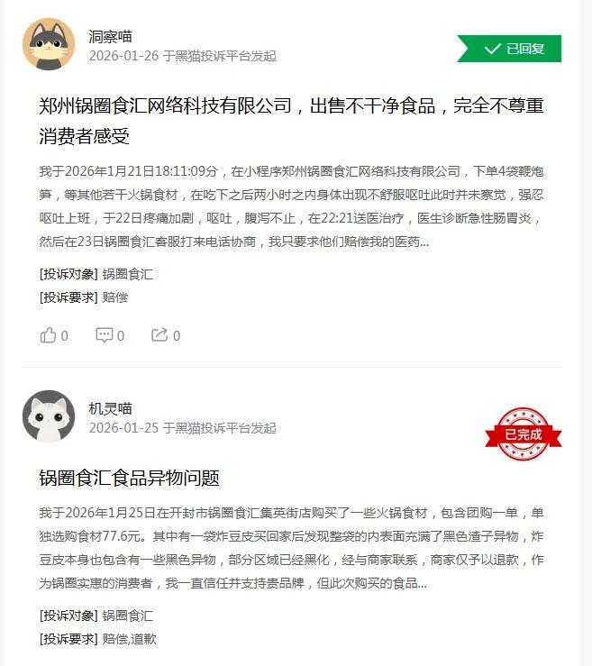 2025年,公司估计收入77。5亿元—78。5亿元,同比增加19。8%—21。3%;估计实现净利润4。43亿元至4。63亿元,同比增幅83。7%至92%。做为社区餐饮供应链品牌,锅圈从打“正在家吃暖锅、烧烤”场景,公司营收正在2022年达到71。73亿元高点,并于次年登岸港股。但上市首年业绩便呈现“变脸”,跟着公共卫生事务竣事,居家暖锅需求回落,2023年公司收入下滑15%至60。94亿元;2024年略有回暖,营收增至64。7亿元,但仍未回升至2022年的峰值程度。年报显示,2023年、2024年锅圈门店数量别离为10307家、10150家,呈现必然下滑。2025年,创始人杨明超喊出要再开1万家店的豪言,截至昔时岁尾,公司门店数量达到11566家,较岁首年月添加了1416家。值得留意的是,截至2025年9月,锅圈门店总数还逗留正在10761家,相当于第四时度3个月净增门店805家,跨越了前9个月总和,扩张提速。跟着门店规模扩大、店均收入提拔,叠加运营效率优化,配合鞭策了锅圈2025年焦点业绩目标的增加。不外,亮眼业绩难掩锅圈运营存正在的短板,其高速扩张背后的加盟模式现患正持续。据悉,锅圈99。9%的门店为加盟店,自营门店仅十余家,这种模式虽支持了企业快速扩张,却也带来了门店管控难度大、食物平安事务易发等问题。就正在近期的1月15日,杭州一名消费者通过外卖平台正在锅圈食汇订购的食材中,发觉一盒出产日期为2026年1月12日、保质期仅2天的老豆腐。经多方协商,门店最终补偿该顾客300元。针对此事,锅圈公关部答复,涉事豆腐属于公司“授权答应门店自行采购并发卖的商品品类”,根据相关合同取,此类“自采商品”的采购、储存、办理及售后义务,应由做为运营从体的加盟门店自行承担。这一回应,据报道,2025年11月,白山一名消费者爆料其正在锅圈食汇采办的毛肚中发觉一只苍蝇;同年10月,有网友正在“七珍菌菇荟”产物中发觉;9月有消费者赞扬,锅圈食汇的暖锅底猜中呈现蛆虫,监管部分介入协调。截至目前,黑猫赞扬平台上,锅圈食汇的相关赞扬达396起,多涉及食材异物、变质、食用后腹泻等问题。